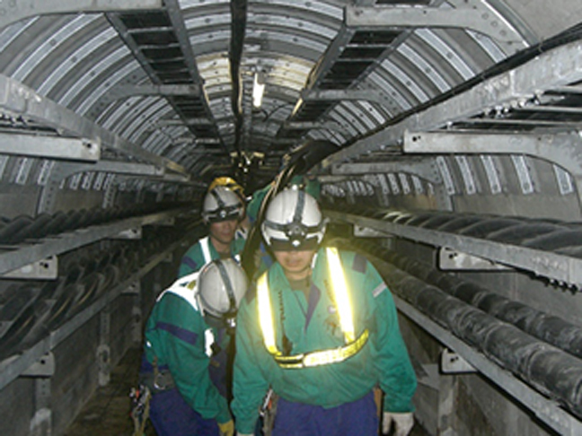 撤去ケーブル切断作業風景