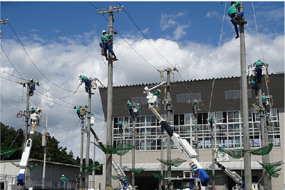 東北電力ネットワークの配電工事を中心に、地域インフラを支える中で、災害復旧など重要な場面にも関わります。特許取得済みの装置や、少人数で安全に作業できる工夫など、効率化と安全性を両立する現場力も大きな特長です。